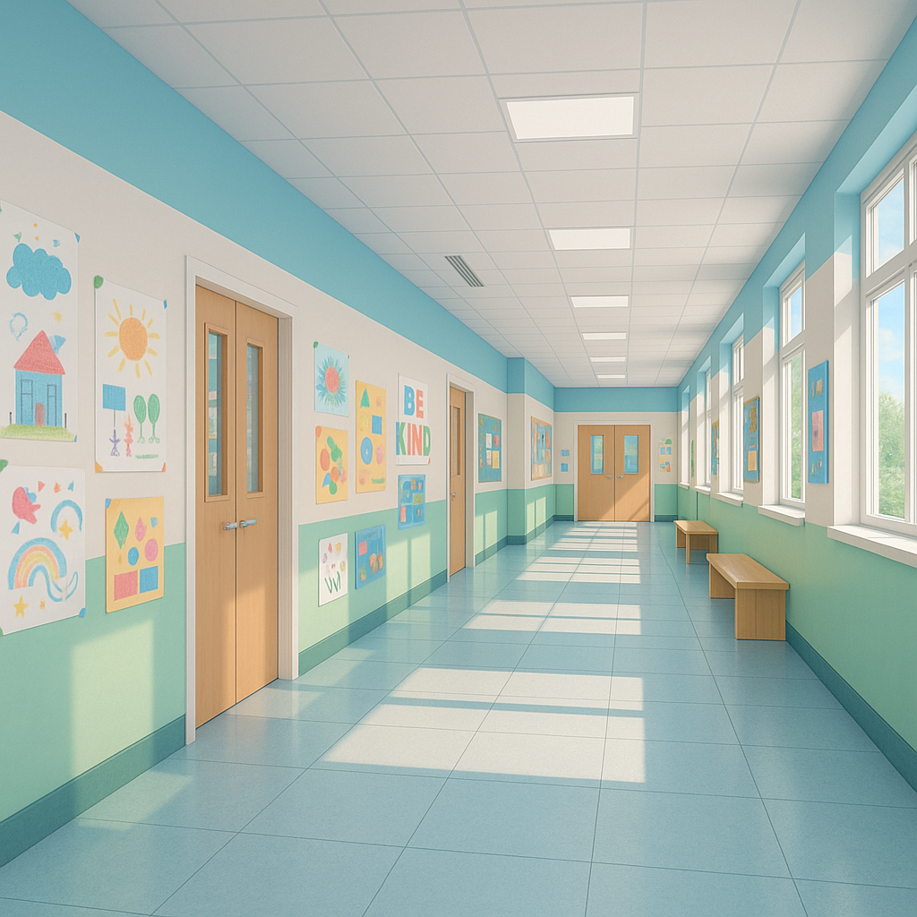 - สีสดใสหรือสีอ่อน (เช่น ขาว ฟ้า เขียว) ช่วยเพิ่มแสงสว่างและลดจุดอับสายตา ครูและเจ้าหน้าที่สามารถมองเห็นกิจกรรมของเด็กได้ถ้วนทั่ว ลดความเสี่ยงของการเกิดอุบัติเหตุหรือการถูกรังแก