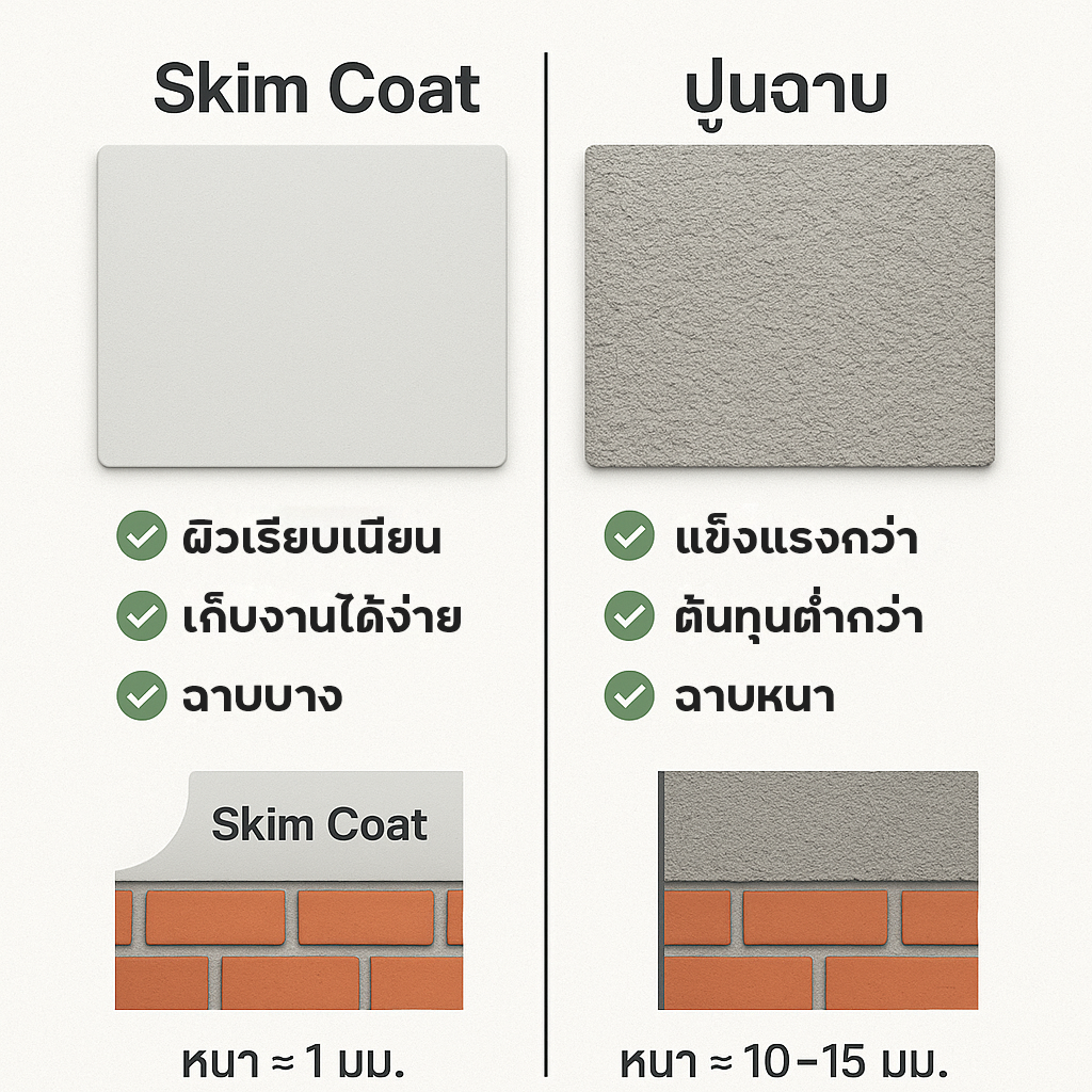 สรุป: Skim Coat กับปูนฉาบทั่วไป ต่างกันอย่างไร?