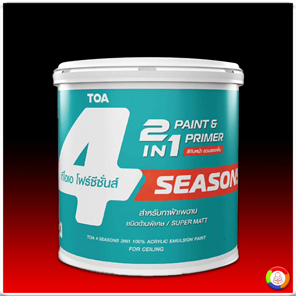 4Seasons 2IN1 Ceiling Paint (Super Matt) Top coat including primer Made from 100% pure acrylic, standard quality, excellent adhesion, lots of paint, covers the surface well, durable against scrubbing, mixed with high quality pigments, can prevent stains as good as new cement primer, prevent mold and bacteria very well, free from mercury and lead, making it safe for residents, saving time on painting and saving costs, worth every square meter.